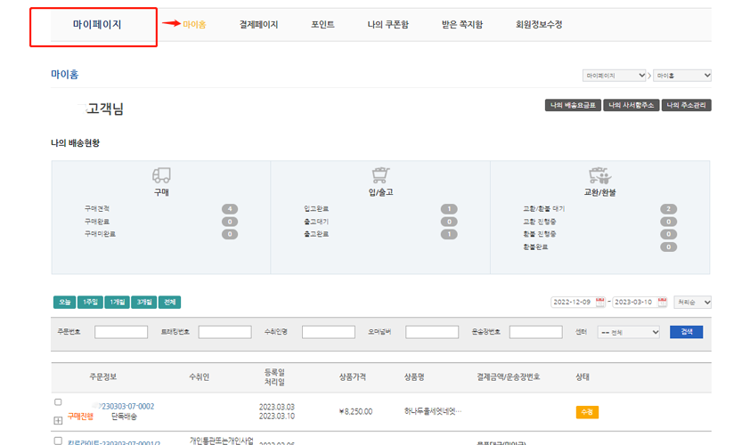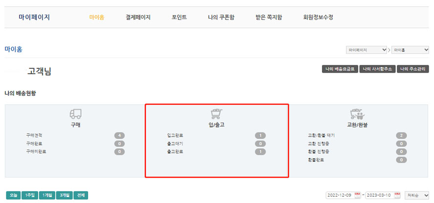 →출고 완료 : 주문한 품목들 중 출고된 품목들을 확인 할 수 있습니다.